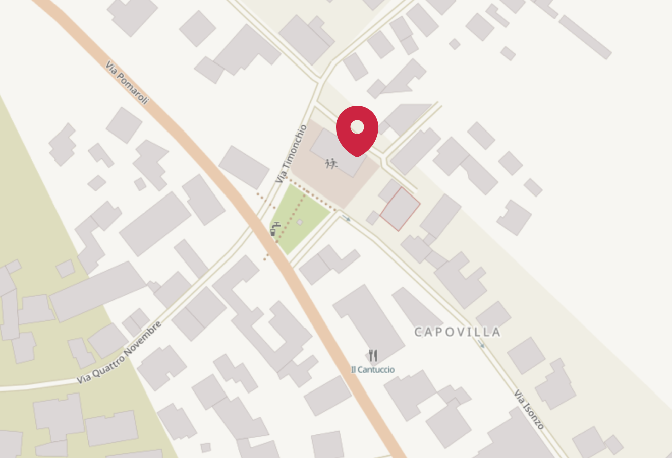 Poiché i posti auto lungo via Timonchio non sono molti, è possibile parcheggiare anche lungo via Capovilla, poco prima dell’incrocio del semaforo, sia sul lato destro che su quello sinistro, dove è visibile anche il parcheggio del capolinea dell’autobus. (5 minuti a piedi).